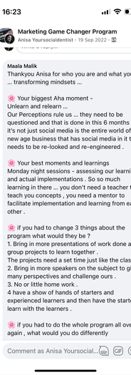 I have attended the Marketing Game Changer Program by Dr. Anisa and it is one of the best marketing programs I have ever attended. This program is one of the best things that can ever happen in your life. I strongly recommend you to join this course.